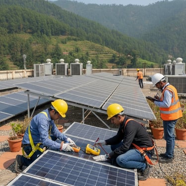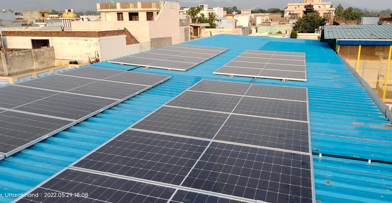 FITNESS CLUB OF RISHIKESH Transforming fitness centers into green energy zones!Tridev Urja Pvt. Ltd. successfully installed a rooftop solar power system on a modern gym rooftop, designed to meet high energy demands of lighting, air conditioning, and workout equipment.